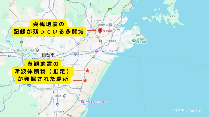 | 主な記録史料 | 『日本三代実録』ほか、地層の津波堆積物調査 |