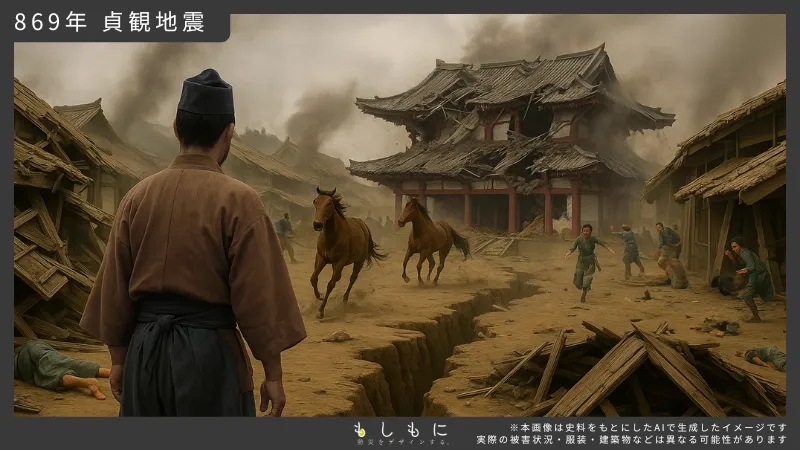 | 869年(当年) | 貞観地震が発生。国家規模での混乱の中、東北沿岸に甚大な被害。 |