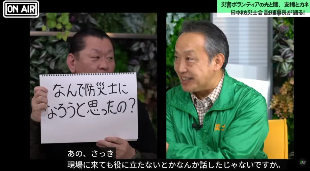 ただ、以下の動画を見ていただくとわかりますが、多くの防災士は被災地入りしても真面目に取り組み、助け合って活動しているという話でした。