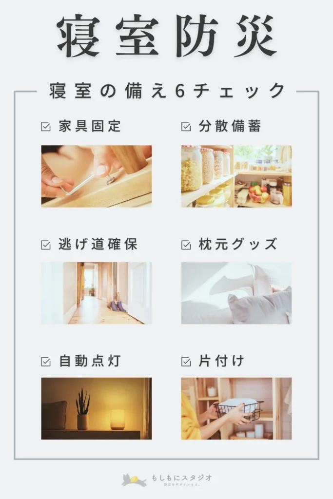 まとめると、寝室の災害対策として具体的には、以下のようなポイントに気を付けると良いです。