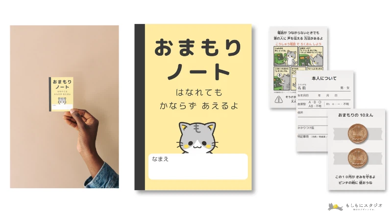 ▼空欄に書き込むだけで集合場所や緊急連絡先がわかる「おまもりノート」を無料で配布しています。ぜひご活用ください。