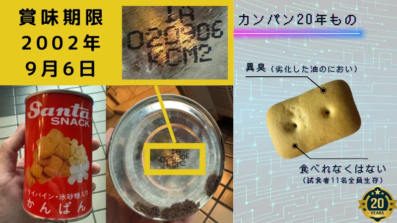 私も機会に恵まれ(!?)20年前に賞味期限が切れたカンパンの缶詰を食べることができました。