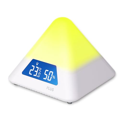 プラスから2024年に発売された温湿度LEDアラームは、三角錐のカタチ。これにより、部屋のどこに置いてあっても360度どこからでも熱中症の危険度がわかります。光の色は、危険度に応じてわかりやすく変化するので、とくに介護中の方、育児中の方には相性がよさそうです。